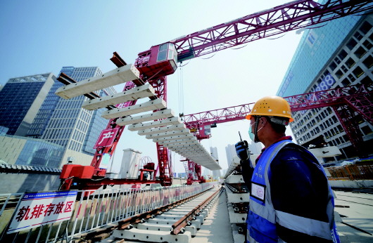 地铁4号线通过50天攻坚,完成25公里铺轨任务,实现轨通目标。