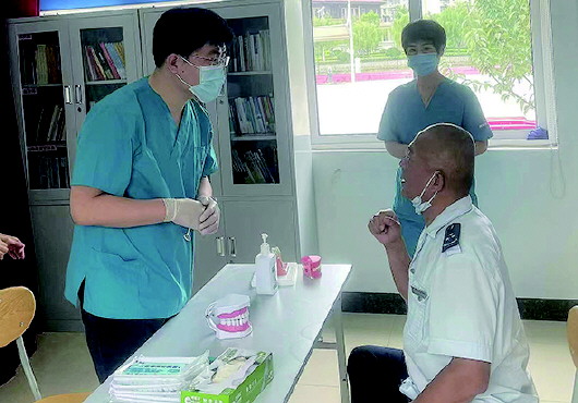 为驾驶员师傅进行口腔检查。