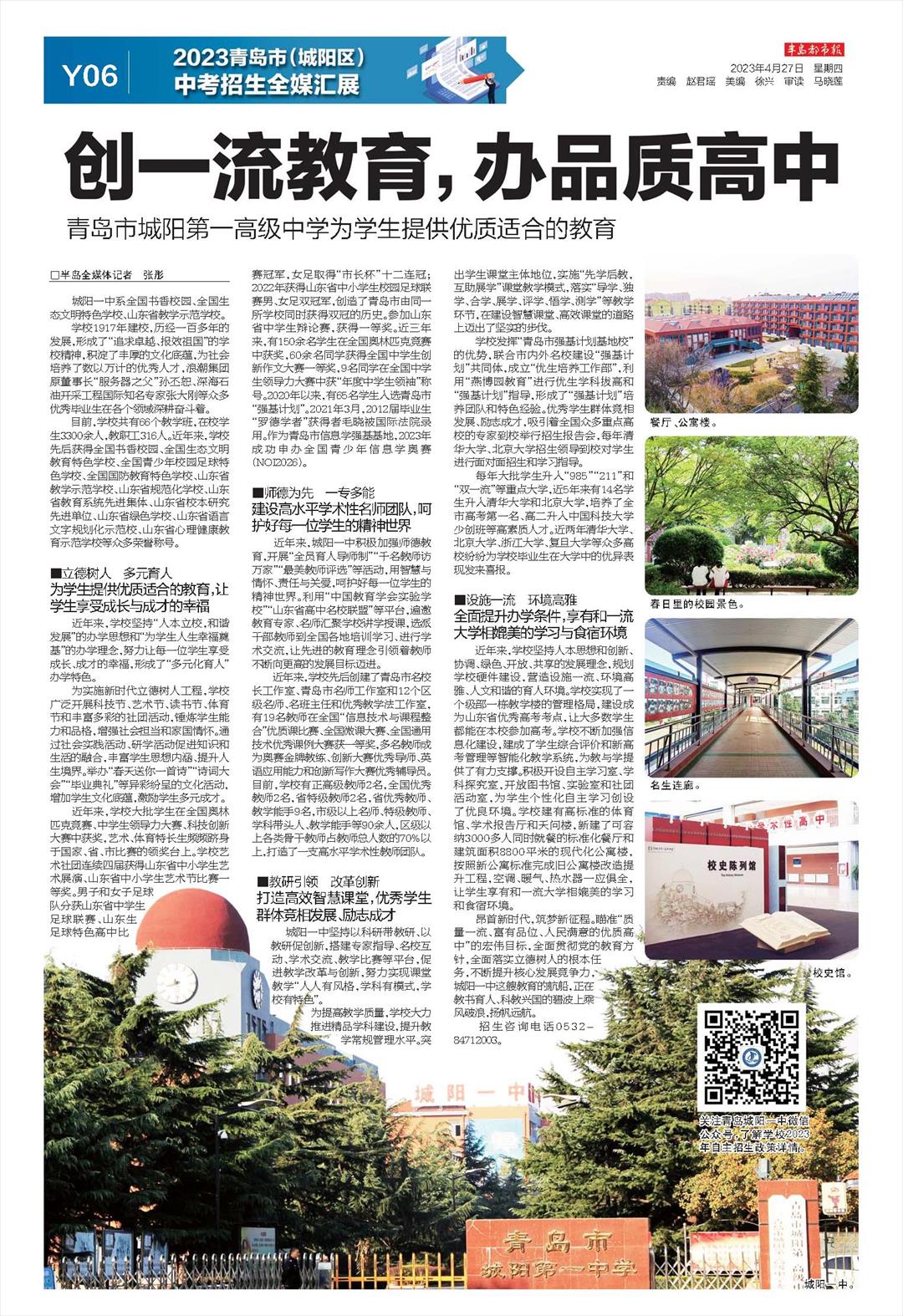 创一流教育,办品质高中