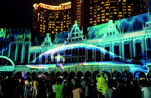 青岛红树林度假世界,第五届光影狂欢节引来如潮游客。