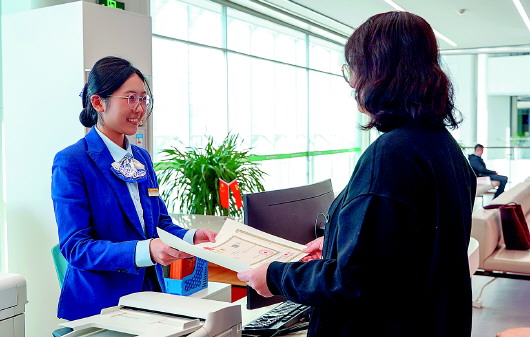 企业负责人在崂山区政务服务中心领取全省首张“个转企”简易登记营业执照。