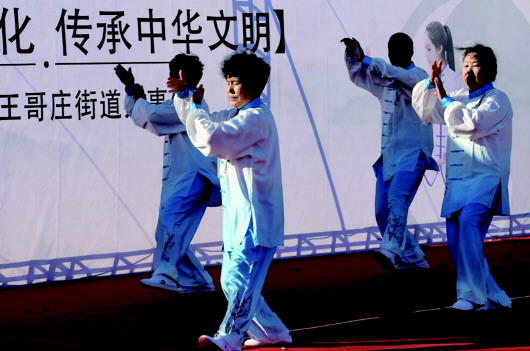 而在11月28日举办的街道全民健身太极拳展演比赛赛场上,精彩同样延续。来自辖区的10支代表队近百名选手身着传统太极服,先后展示了八段锦、十八式太极拳、二十四式太极拳,在轻柔舒缓的太极乐曲中翩翩起“武”,行云流水般的动作在一招一式中彰显刚柔并济之美。经角逐,晓望村、双台家园以及梁家村代表队获得比赛前三名。