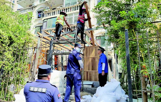 麦岛执法中队开展违建治理。