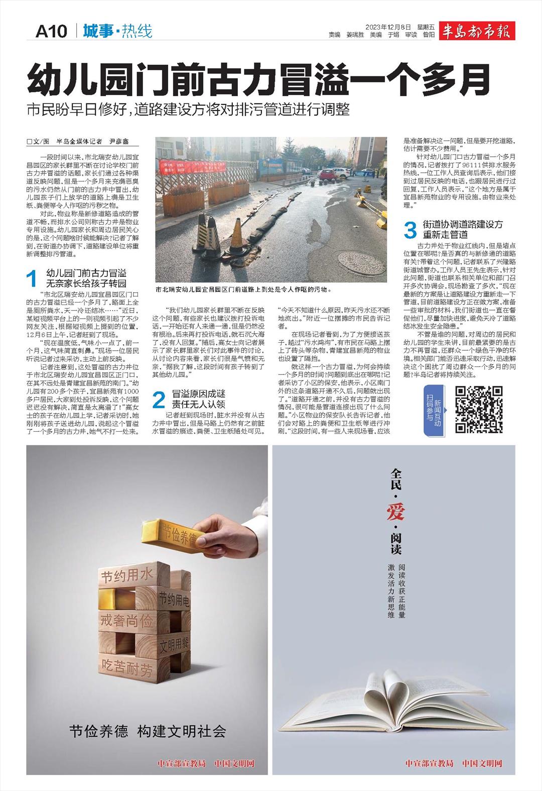 幼儿园门前古力冒溢一个多月