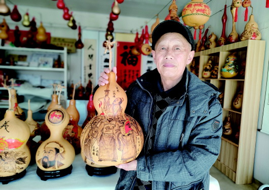 周强一自豪地说,除了市民们喜欢他的作品,还有不少外国友人也对他的烙画葫芦情有独钟。“在青岛市举办的亚泰旅游博览会,我制作的1000多个工艺葫芦被国际友人收藏保存!就在半个月前,我创作的非遗工艺葫芦作品《乐欢天》送给了来访的牙买加大使,受到国际友人的高度赞扬。”周强一从手机里翻出当时的报道,边向记者展示,边兴奋地说道,自己的作品能走出国门,让他更有了信心。
